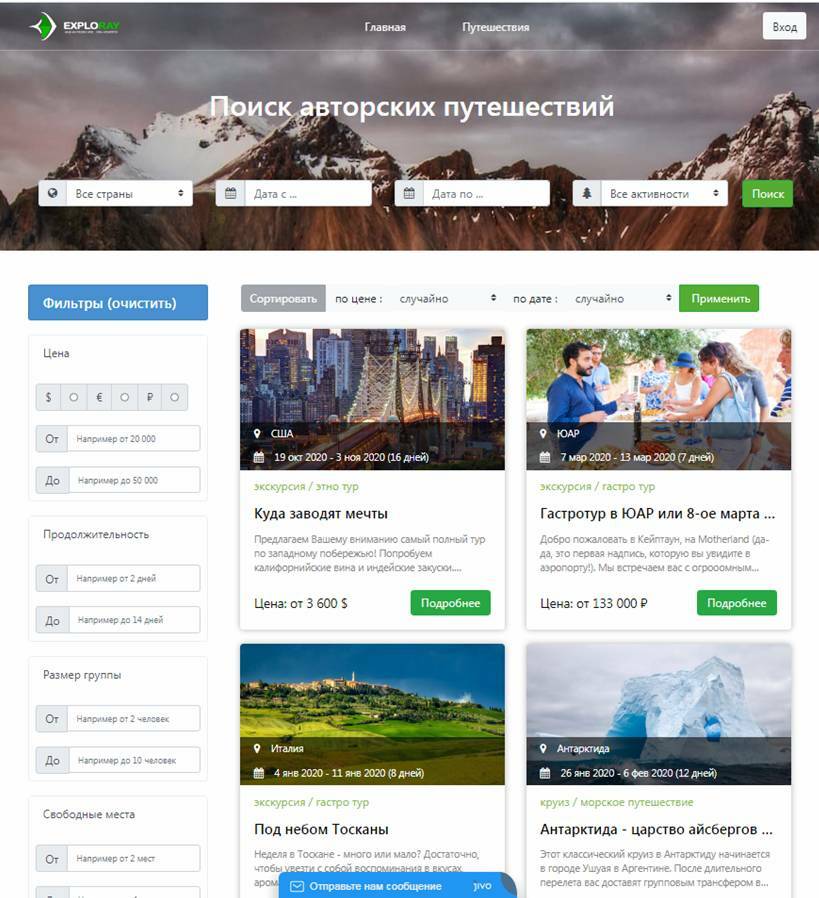 Сайт-агрегатор, содержащий предложения туров-пленеров
