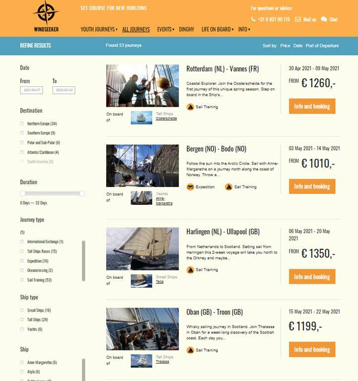 Сервис по поиску парусных путешествий www.windseeker.org